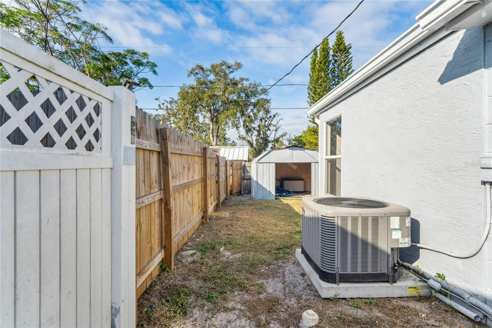Both bathrooms have been completely remodeled with beautiful new tub and shower areas. The home features a split bedroom layout for added privacy. The air conditioner and water heater were replaced in 2022, the roof was replaced in 2017, and there is also a storage shed for additional storage.
