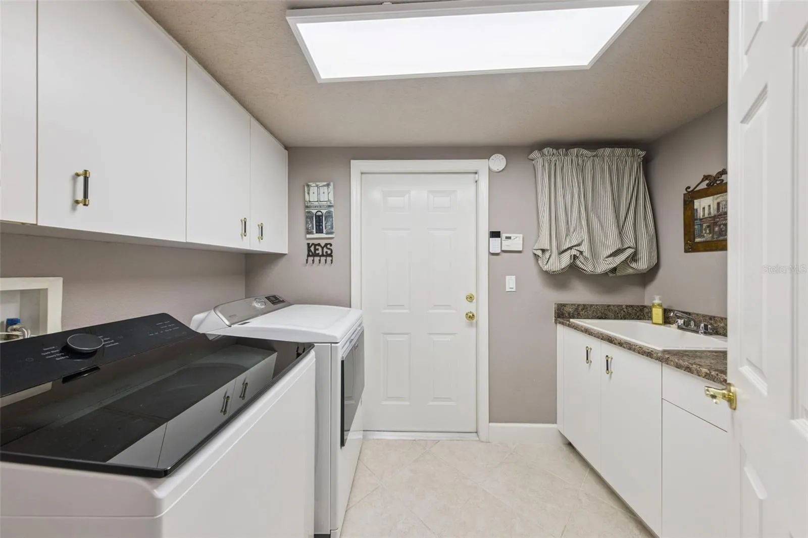 Inside, the kitchen has been beautifully upgraded with GE Monogram appliances, including a 5-burner induction glass stovetop, convection speed-cook microwave, oven, and a large Kraus single-basin sink with a no-touch faucet and disposal. Additional interior upgrades include new LG washer with AI wash feature, newer Maytag dryer, new French doors for both the office and the primary suite, plantation shutters, a custom dining room pull-down shade, new blackout drapes, and a fully customized built-in closet system in the primary bedroom. Bathrooms received modern enhancements with new glass shower enclosures in both the cabana and upstairs guest bathrooms, along with fresh paint in the cabana and primary suite areas. A spacious interior laundry room adds convenience, while the newly added garage shelving offers extra storage.