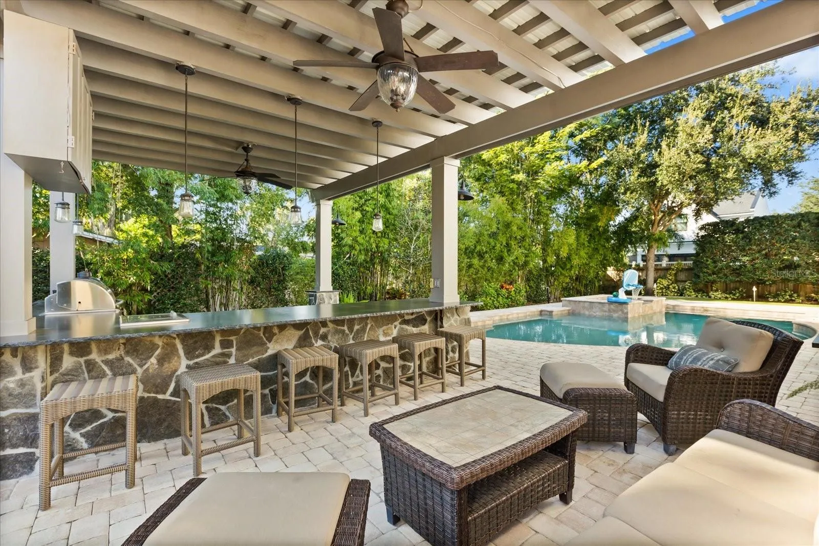 Beautifully updated and offered for the first time, this 2015 David Weekley home sits on a rare cul-de-sac in the heart of Winter Park, zoned for Dommerich Elementary and Winter Park schools. This 5-bedroom, 5-bath home features an office, large bonus room, covered lanai with full summer kitchen, and a backyard putting green. Additional highlights include a 3-car garage, a gated parking pad ideal for extra vehicles, a boat, or jet skis, a tankless gas water heater, and a new roof installed in 2021. Thoughtful improvements include custom built-ins in the living room, office, flex space, and dining room; upgraded closet systems throughout; a customized pantry with pull-out shelving; under-stairs storage with a “secret door”; added attic flooring and garage overhead racks; wood shutters downstairs and blinds upstairs; exterior paint in 2018; custom barn doors; a LaCantina slider conversion; and a 2021 dining room renovation featuring a custom bar and raw-edge floating shelves. With its prime location, curated upgrades, and move-in-ready condition, this exceptional Winter Park home will not last long.