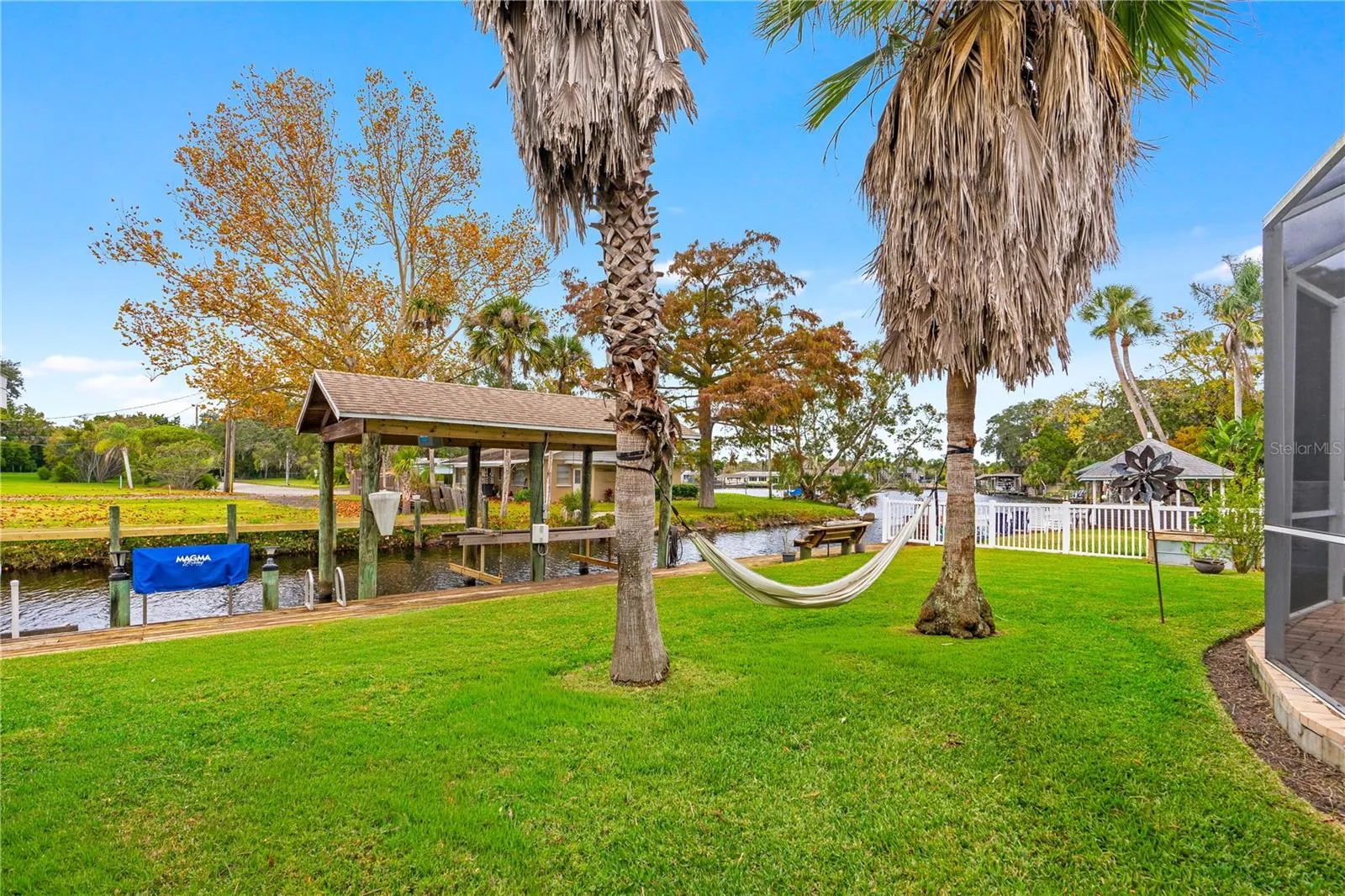 Outdoor living is a highlight of this property. Enjoy the screened pool, a huge 16×20 outdoor living area with travertine stone not included in the square footage, and an incredible setup for boating enthusiasts. The property features a boathouse with an electric boat lift, a second lift for a jet ski, a fish cleaning station, an outbuilding with electricity and tile flooring, and beautiful tropical landscaping. Additional perks include hot and cold water for the outdoor shower and a Weber grill for the outdoor kitchen area.