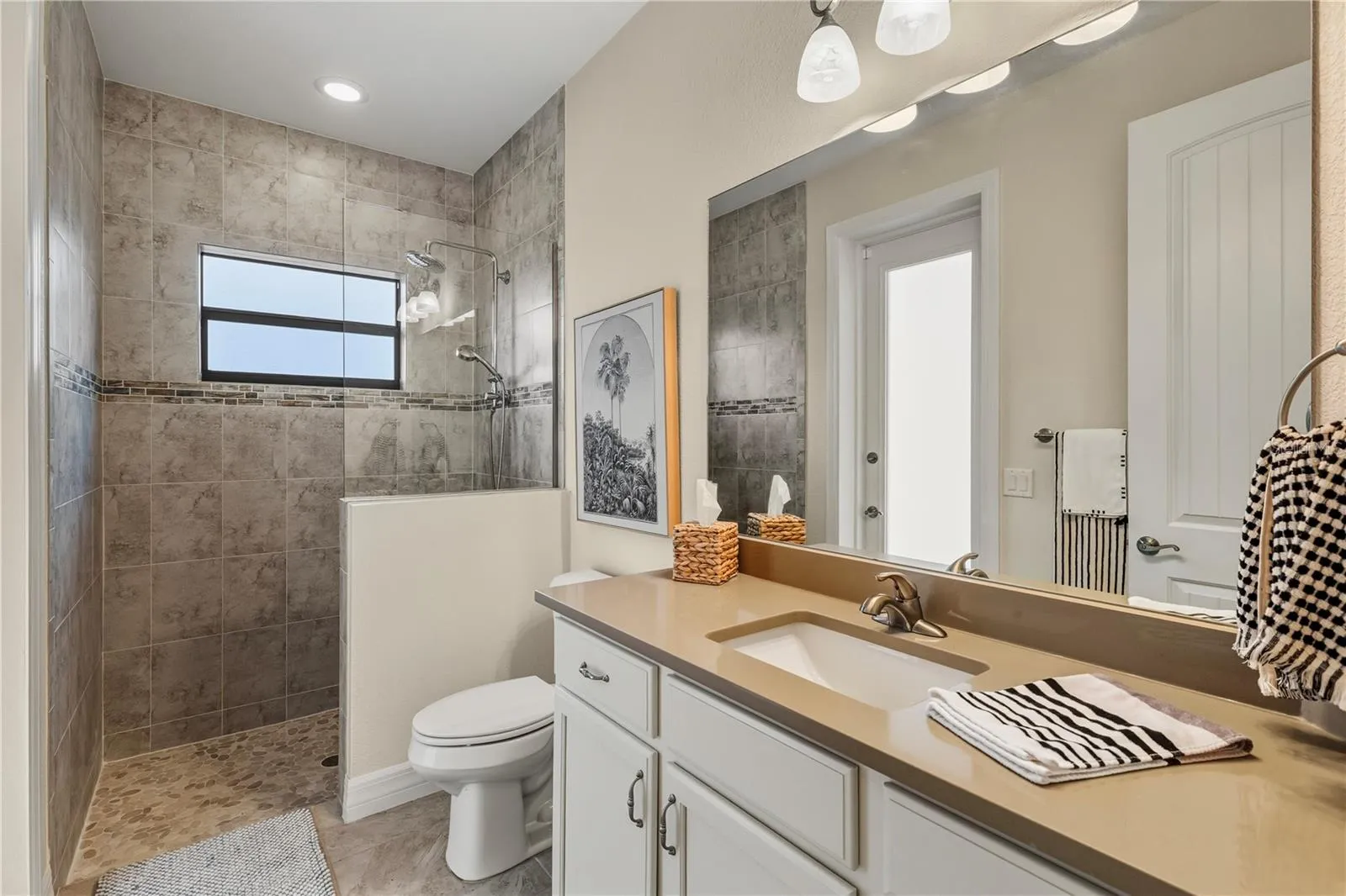 Two generously sized guest bedrooms share a stylish bathroom with direct pool access. Additional highlights include a whole house reverse osmosis system, large laundry room, 3-car garage with epoxy flooring, spray foam insulation and a full irrigation system. The large paver driveway and walkways add to the home’s curb appeal.