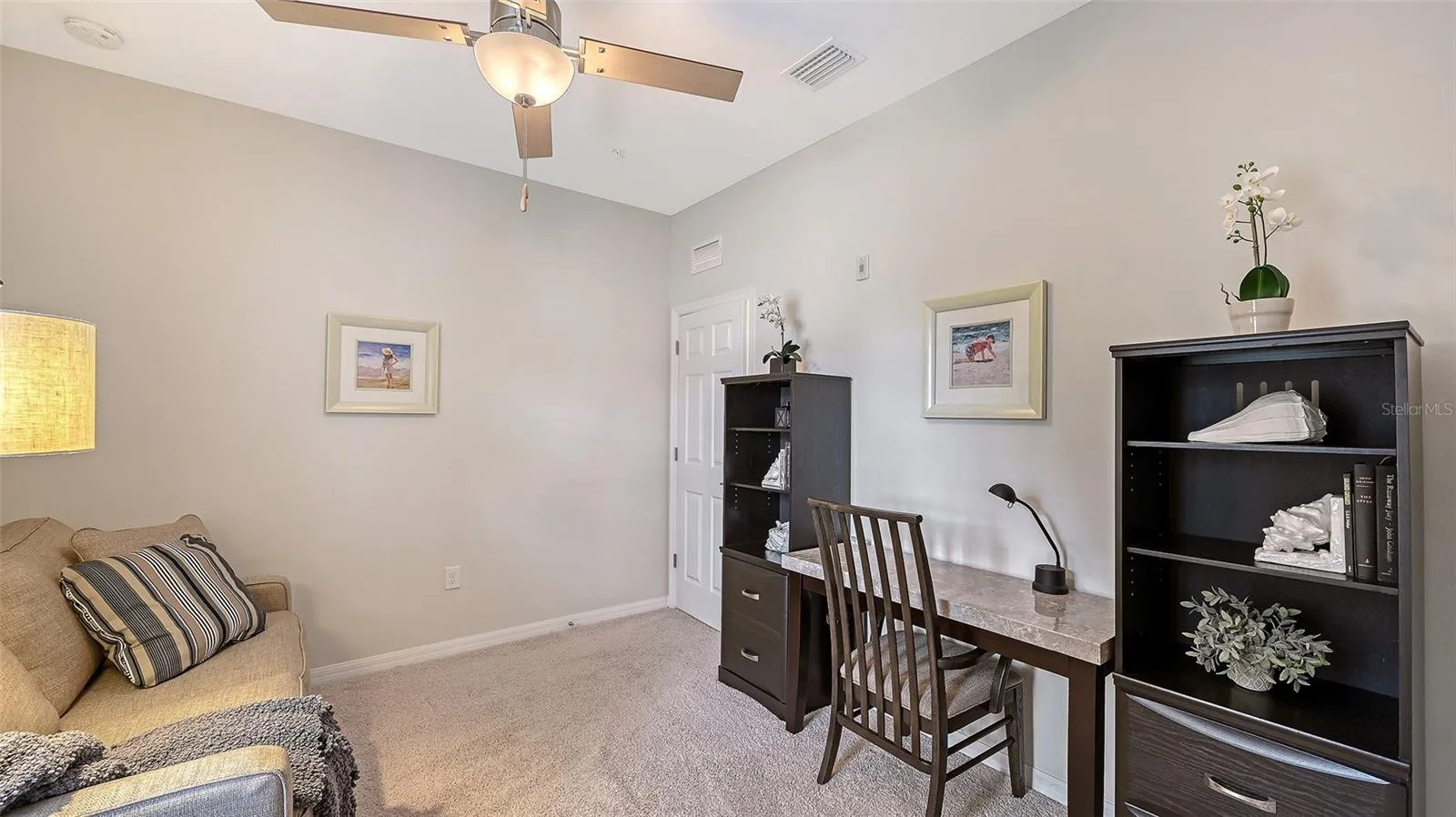 The luxury Florida lifestyle you’ve been dreaming of is here! Step into carefree, maintenance-free living in this exceptional 3-bed, 2-bath walk-up condo, perfectly positioned in a highly desirable location. Originally a model home, this 2015 residence is loaded with upgrades and has been meticulously maintained by its one and only owner. Fully furnished and thoughtfully appointed, it’s truly turnkey just bring your suitcase and start living. Built for peace of mind, the community features solid concrete block construction and hurricane-impact windows for added safety and durability. A private, ground-level garage beneath the residence offers unmatched convenience when arriving or heading out. Inside, the open-concept layout feels bright and spacious thanks to high ceilings, crown molding, beautiful tile floors, plantation shutters, and custom drapery. The chef-inspired kitchen is a standout, featuring quartz countertops, stainless steel appliances, a stylish backsplash, walk-in pantry, and upgraded fixtures, perfect for both everyday cooking and entertaining. The primary suite provides a peaceful retreat with a walk-in closet and a spa-like ensuite bathroom with double vanity and walk-in shower. Two additional bedrooms on the opposite side of the home, along with a second well-appointed bathroom, offers comfort and privacy for family or guests. Relax on the screened-in lanai overlooking tranquil water views, making it an ideal spot for morning coffee or evening cocktails. All of this is set in a prime location between Sarasota and Venice, with quick access to US-41, I-75, Siesta Key, and Nokomis Beach. Enjoy a short stroll to Bay Street Park with its playground and dog park, or walk to Pine View School, Walmart, and the Legacy Trail’s Osprey Junction trailhead. Vibrant dining, shopping, golf courses, coastal recreation, and top-rated medical facilities are all within minutes. Residents of Bay Street Village enjoy resort-style amenities including a heated pool, fitness center and clubhouse. With a reasonable monthly condo fee (no flood insurance required) covering exterior maintenance, roof, water, sewer, and two gated entrances, this property offers ease of ownership whether you’re looking for full-time living, a seasonal retreat, or a smart investment. Grab your swimsuit and flip-flops, your Florida lifestyle awaits!