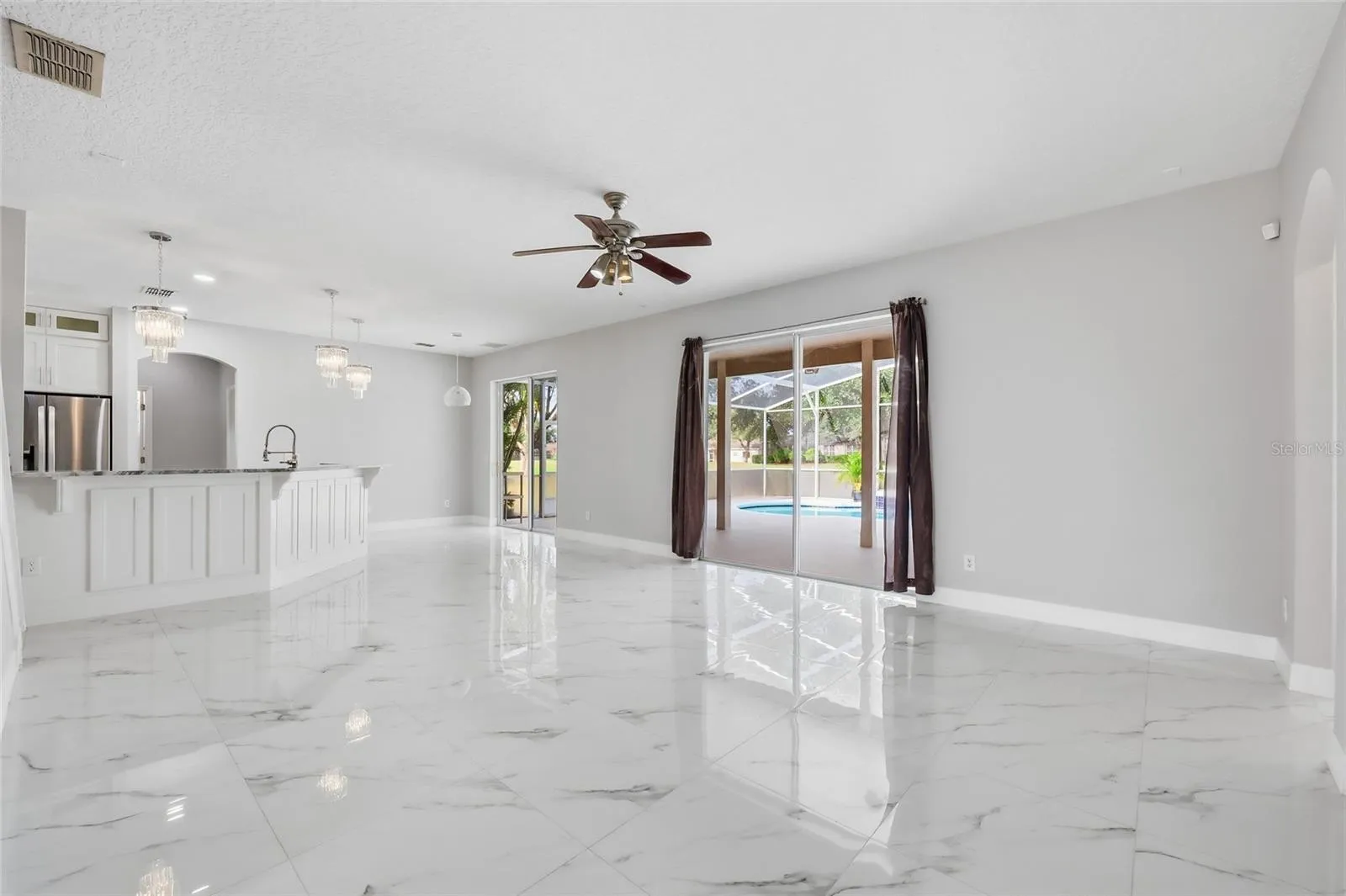 Recent upgrades include a new roof (2017), AC upgrade (2025), a full kitchen renovation (2025) with natural stone countertops, designer lighting, and new appliances, as well as a refreshed pool and renovated downstairs bedrooms and bath.