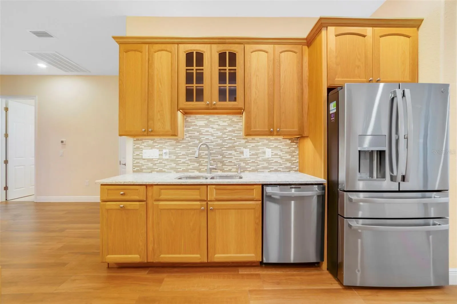 One or more photo(s) has been virtually staged. Seller may consider buyer concessions if made in an offer ~ Welcome to Mount Olive Shores North, a GUARD GATED ~ RESORT STYLE RV COMMUNITY where everyday living feels like a getaway! This newer home, BUILT IN 2020, delivers modern comfort, smart design, and a lifestyle centered around convenience, flexibility, and peaceful surroundings. Set on a dry retention pond lot with NO REAR NEIGHBORS and a fully FENCED YARD, the setting is quiet, private, and ideal for full-time residents or those seeking a home base while traveling in their RV. Step inside to soaring 11’ CEILINGS and WOOD LAMINATE FLOORS THROUGHOUT, creating a light, open feel from the moment you walk through the front door. The layout flows beautifully, with the kitchen at the heart of the home and flexible living spaces on either side, making daily living simple and entertaining effortless. The kitchen is thoughtfully finished with sleek countertops, STAINLESS STEEL APPLIANCES, a tiled backsplash, a breakfast bar, pendant lighting, pantry storage, and plenty of cabinet and counter space – well appointed and central to it all. The generous PRIMARY SUITE features DUAL CLOSETS and a private en-suite bath, nicely tucked away for added comfort. A second bedroom sits alongside a full bath, perfect for guests. You will also find a cozy bonus space suited for an office, hobby area, or extra storage. A set of stairs leads up to an unfinished attic – a rare feature filled with potential for future expansion or organized storage. Outdoor living is equally inviting with a rear SCREENED LANAI overlooking peaceful green space, no rear neighbors, and plenty of room to unwind. The property is designed with RV living in mind: RV carport, RV parking, boat parking, and golf cart parking, offering the ultimate in versatility and convenience. Living in Mount Olive Shores means access to a long list of AMENITIES, all centered around the natural beauty of MUD LAKE, which serves as the community’s picturesque backdrop. Enjoy LAKE ACCESS, recreational spaces, and the active lifestyle this resort-style development is known for. Located close to I-4, shopping, dining, and Central Florida attractions, you are never far from anything you need. Whether you are seeking a primary residence or the perfect home away from home between adventures, this well-designed 2020 build offers comfort, flexibility, and best of all – community! Call today to schedule a tour and fall in love with Motorcoach Drive!