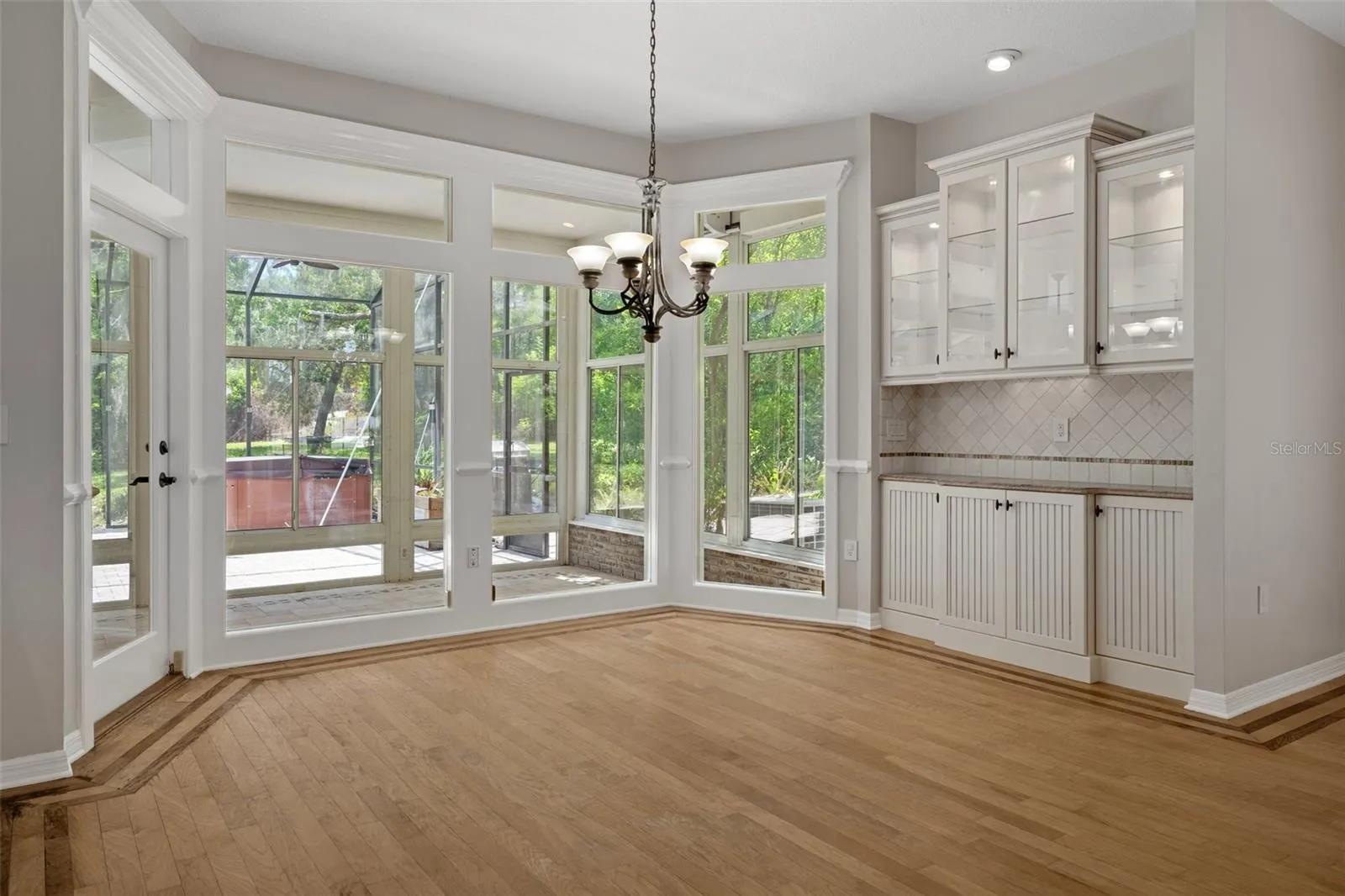 This immaculate 4-bedroom, 3.5-bath, two-story pool home with a koi pond features nearly 3,700 sq. ft. of refined living space. A welcoming 14×10 foyer with crown molding and 5.25” baseboards leads to a formal living room (16×14) with transom windows, French doors, and custom ceiling detail. The oversized dining room (18×15) offers a bay window and chair rail accents—perfect for entertaining.