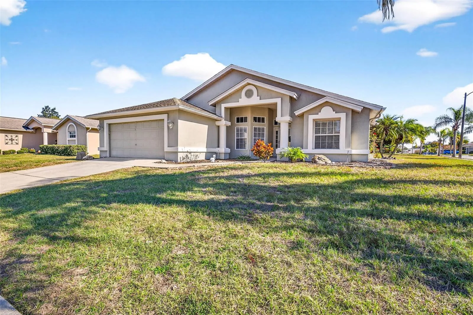 Priced to sell!!! Must see this meticulously maintained, open, and spacious 3-bedroom, 2-bathroom pool home. It is perfectly nestled on a large corner lot in the highly desired, deed-restricted Estates community. This residence offers the sought-after Florida lifestyle with both comfort and convenience. Home boasts well-built block construction featuring a bright, and open floor plan with soaring high ceilings and an abundance of large windows that flow with character and natural light.