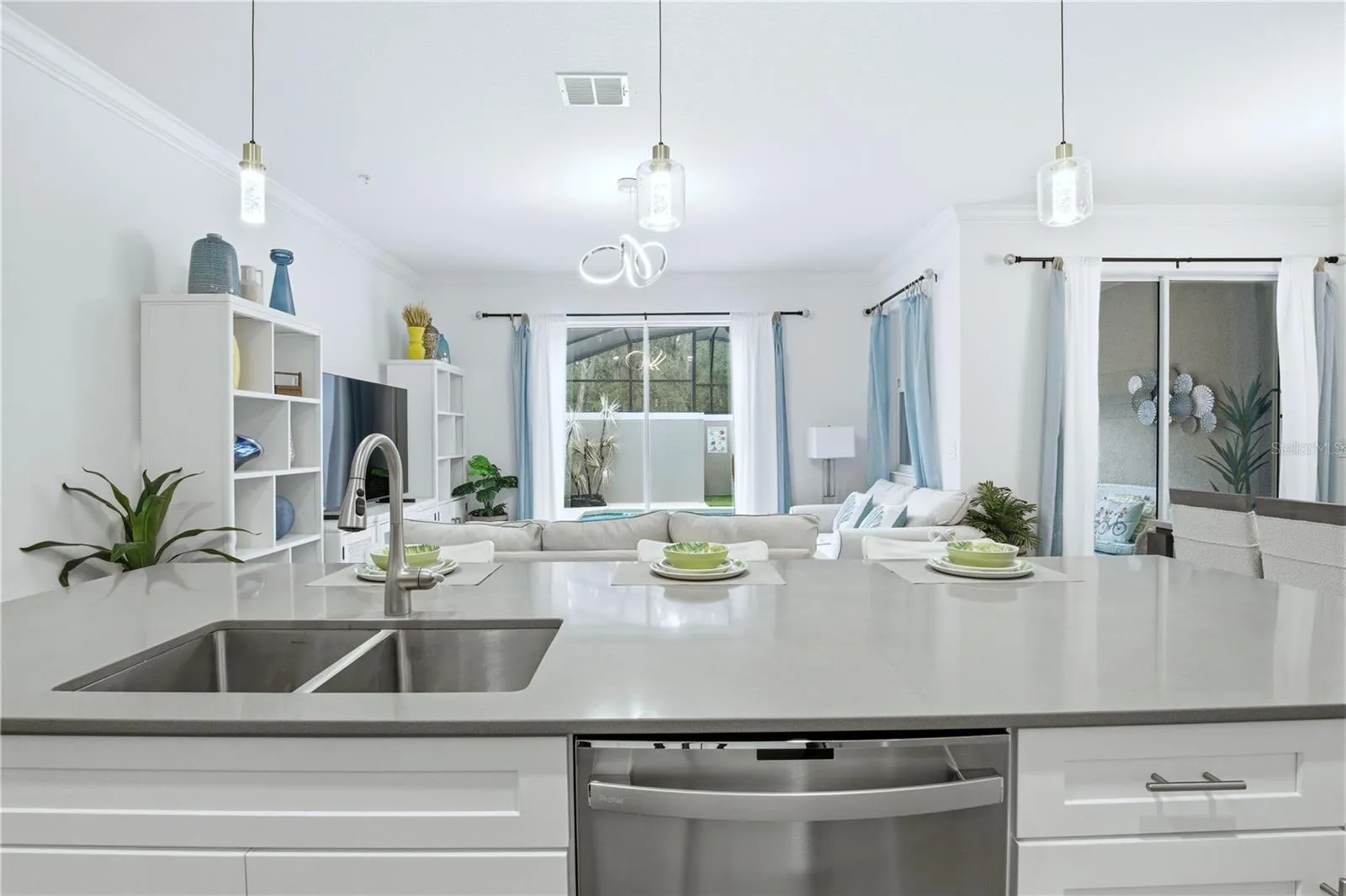 Slide open the glass doors to your private screened-in pool oasis, complete with no rear neighbors and a gorgeous water view. Whether you’re enjoying your morning coffee in the sunshine or unwinding after a day at the parks, this peaceful outdoor retreat offers unmatched privacy and comfort.