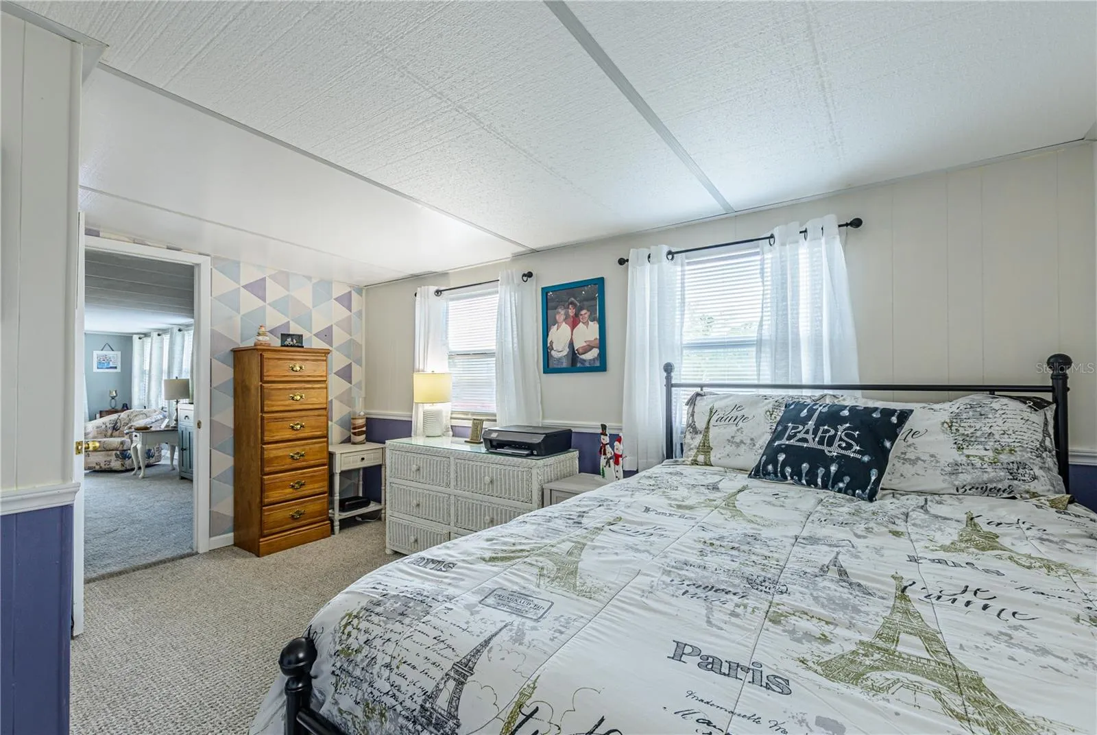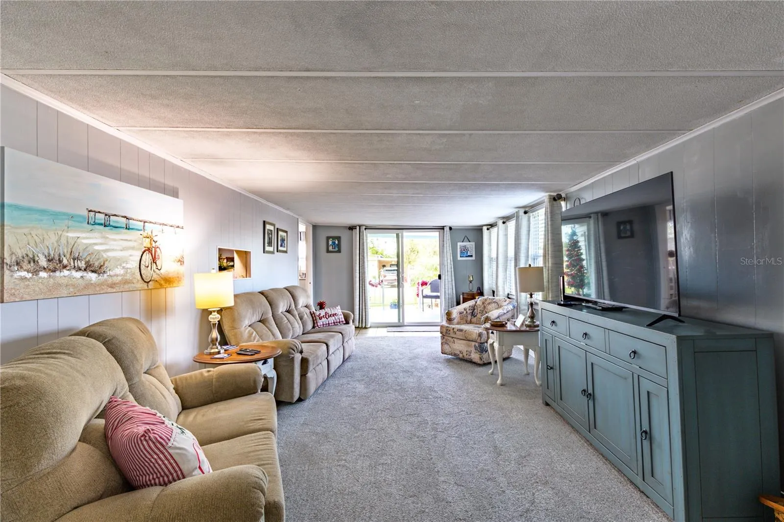The spacious living room and second bedroom are an added-on the left side with a concrete slab, providing extra living space. Additional updates include updated flooring and windows throughout, A/C (2020), and a membrane roof (2021) New electrical panel inside and outside.