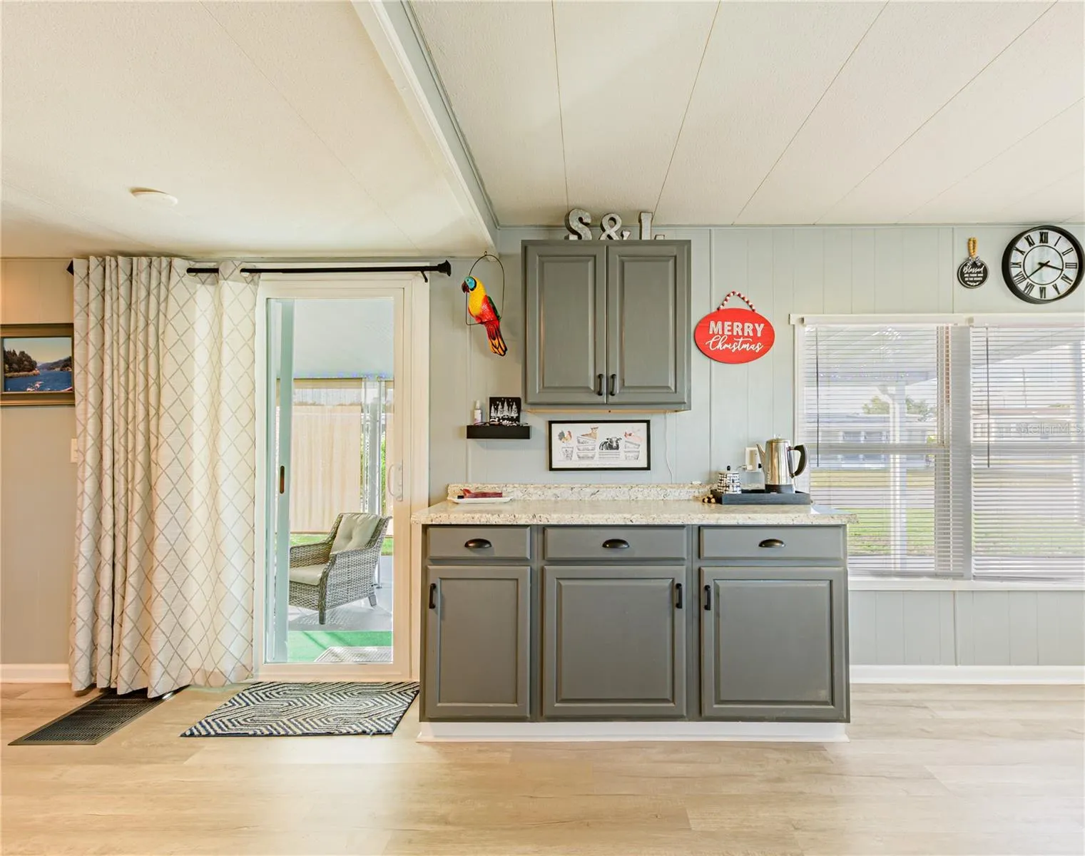 Step inside to find an updated kitchen with new appliances, a tiled backsplash, and a coffee bar with abundant storage. The kitchen opens to a bright and spacious dining area, perfect for entertaining. The primary bedroom and bath are located at the back of the home for added privacy.
