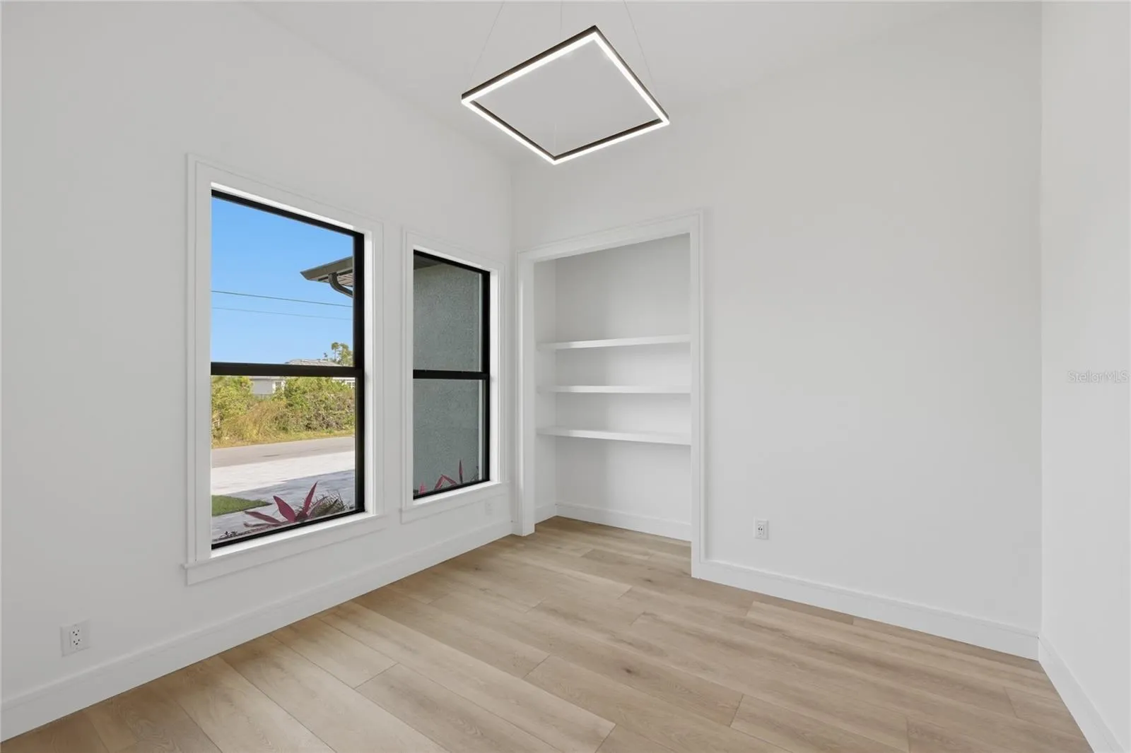 The thoughtfully designed interior showcases high ceilings and an open floor plan, seamlessly integrating the living areas. The gourmet kitchen is equipped with premium stainless steel appliances, elegant light stone countertops, and a central island, catering to both culinary enthusiasts and those who enjoy entertaining. The primary suite offers a retreat, complete with a tray ceiling and a well-appointed ensuite bathroom featuring dual vanities and a tile shower. Outdoors, the property boasts a large lanai, pool cage, pool area with a spa, complemented by a glass enclosure for year-round enjoyment. The canal in the back yard provides an ample area for your future dock and boat lift and has access to Charlotte harbor and the Gulf of Mexico. The surrounding landscape enhances the outdoor living experience, making it ideal for entertaining or relaxing in privacy. Located in South Gulf Cove, residents benefit from proximity to waterfront access, parks, and community amenities, making this property an attractive investment for those seeking a vibrant lifestyle.