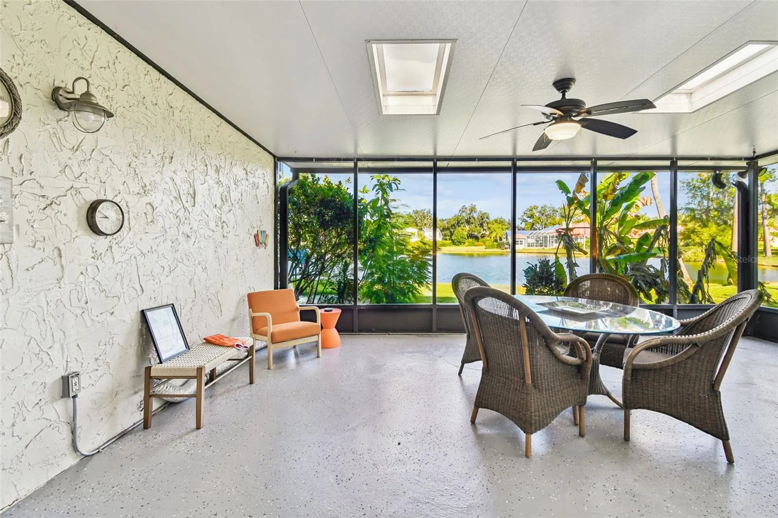 As you arrive, you’ll be drawn to the manicured landscaping and tranquil views of a spring-fed LAKE, creating a picturesque setting ideal for relaxation. This well-appointed unit boasts a large screened LANAI overlooking the lake—perfect for enjoying morning coffee or evening sunsets.