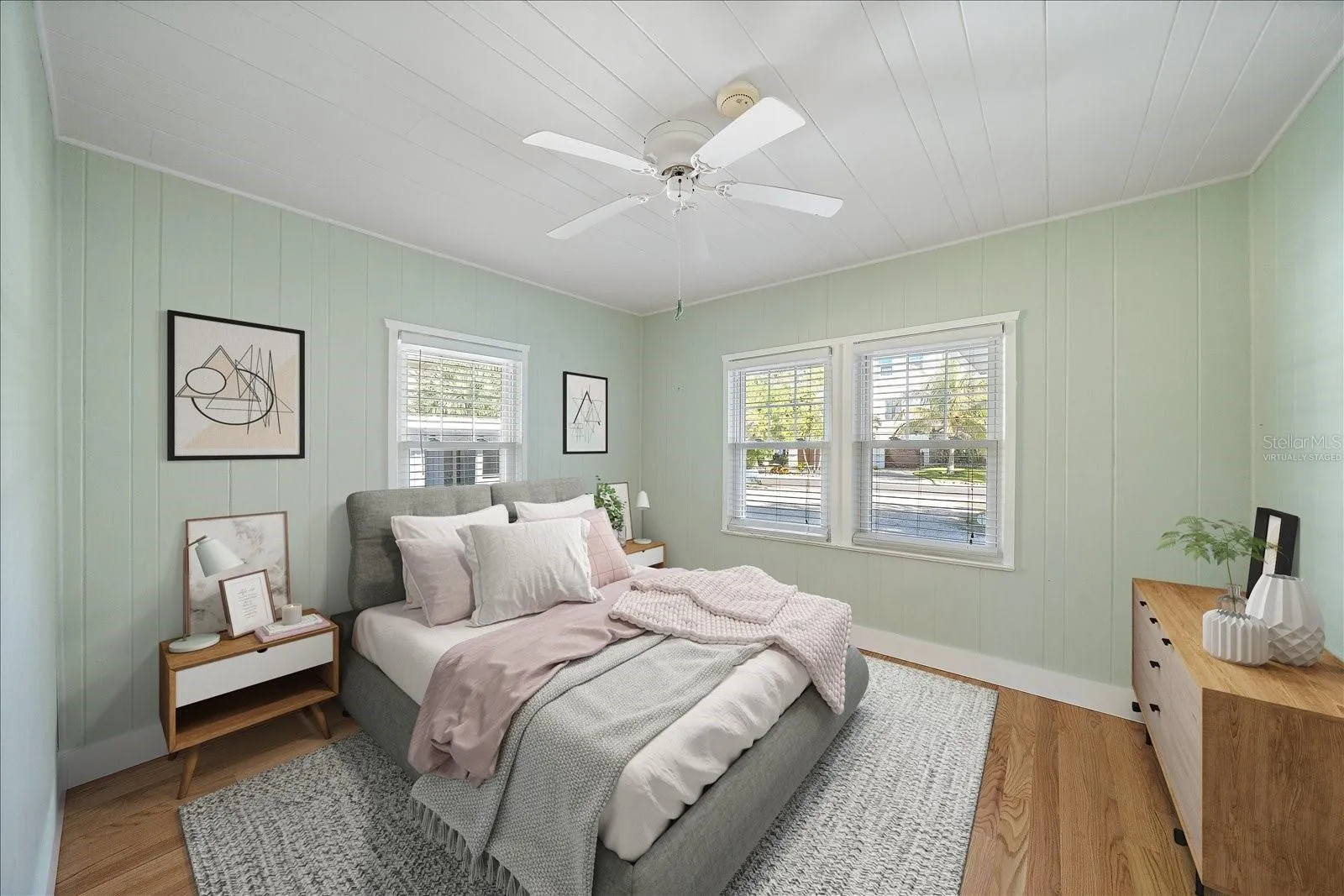 Offering two bedrooms, two bathrooms, and approximately 1,180 square feet, the home retains timeless island character with original cypress walls and ceilings, abundant windows, and a wood-burning fireplace that anchors the living space. A standout feature is the 15×33 rear-facing covered and screened lanai, providing approximately 510 square feet of under-roof outdoor living with pitched ceilings, fans, sun shades, and fully pocketing sliding glass doors, with the flexibility to incorporate this space into additional interior living if desired.