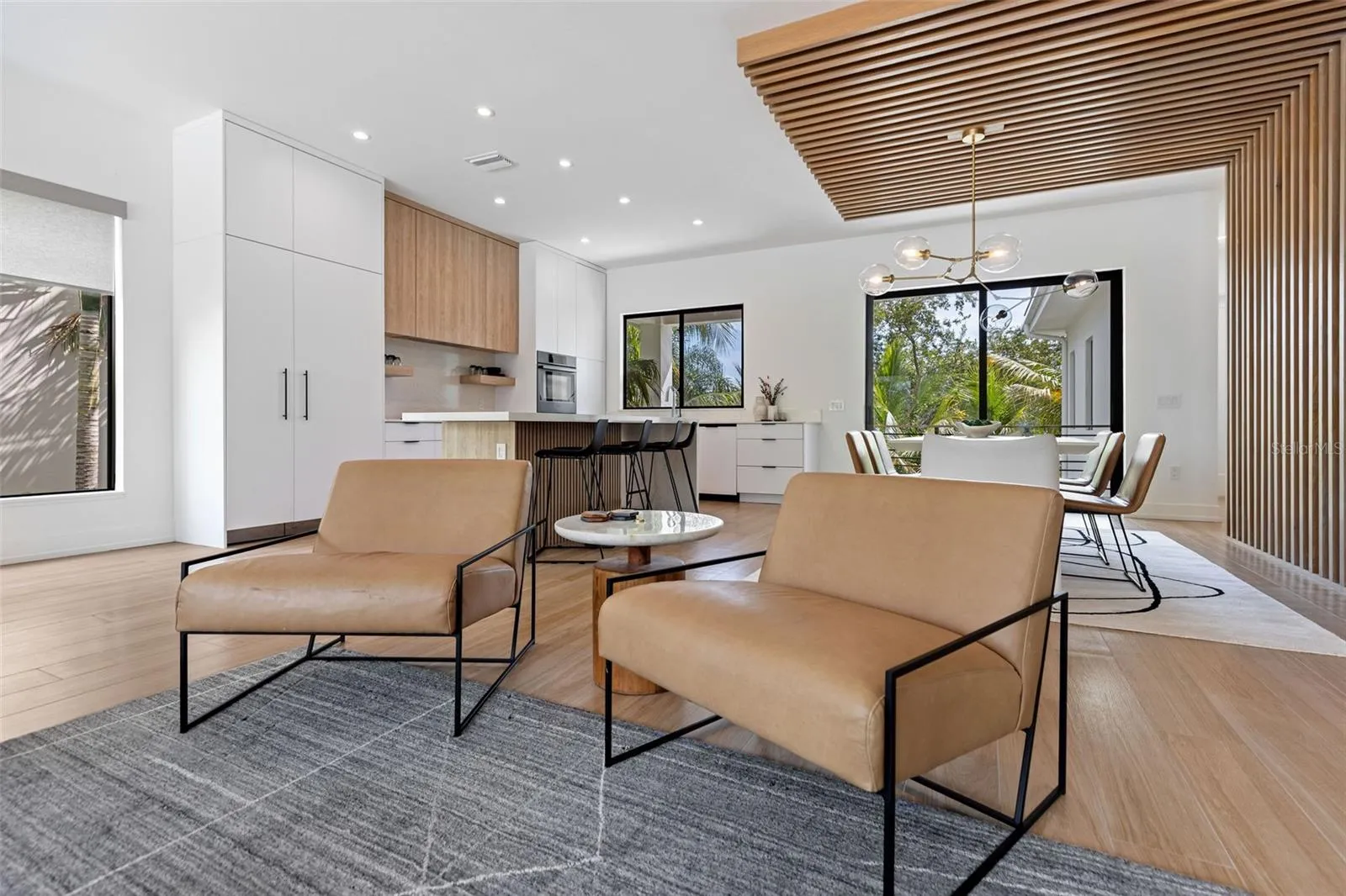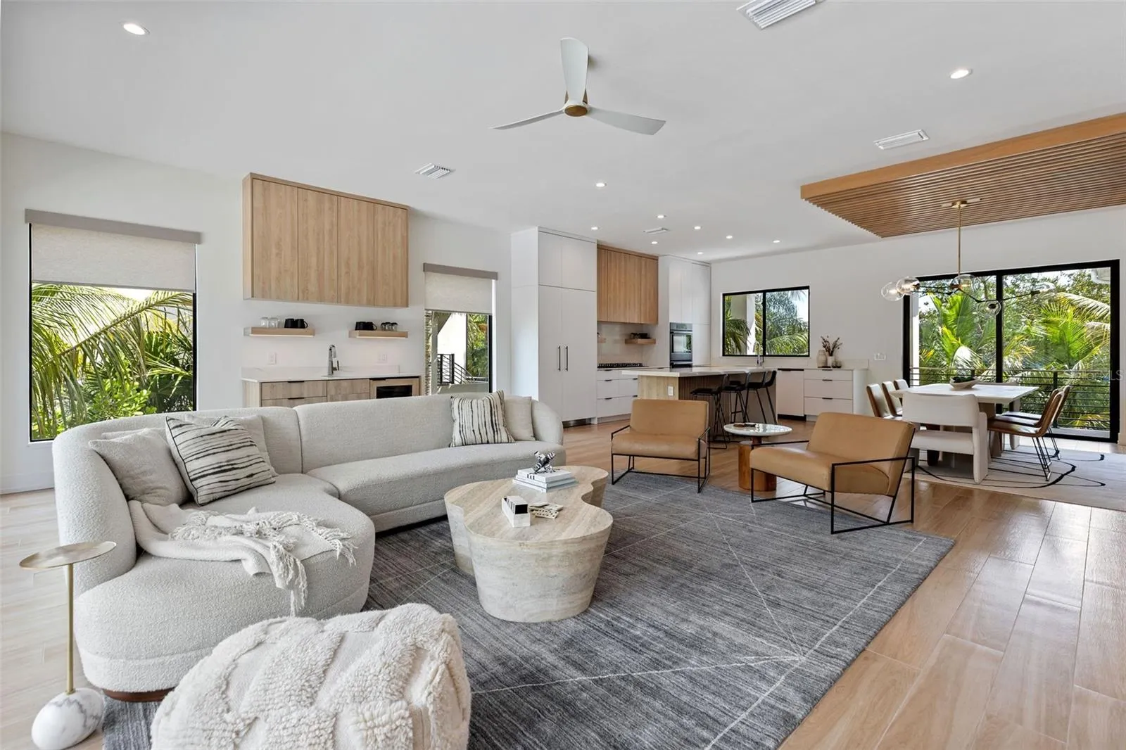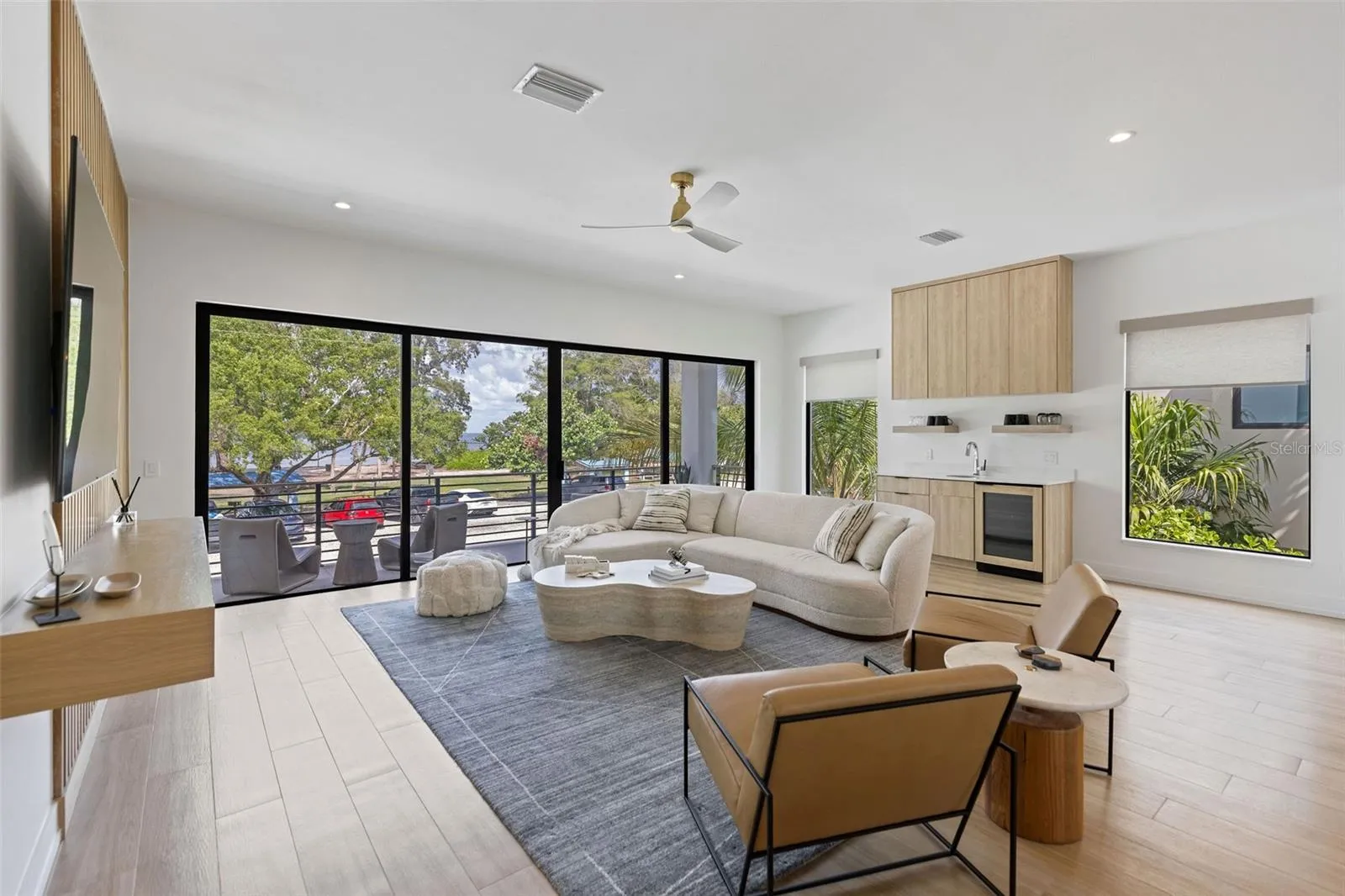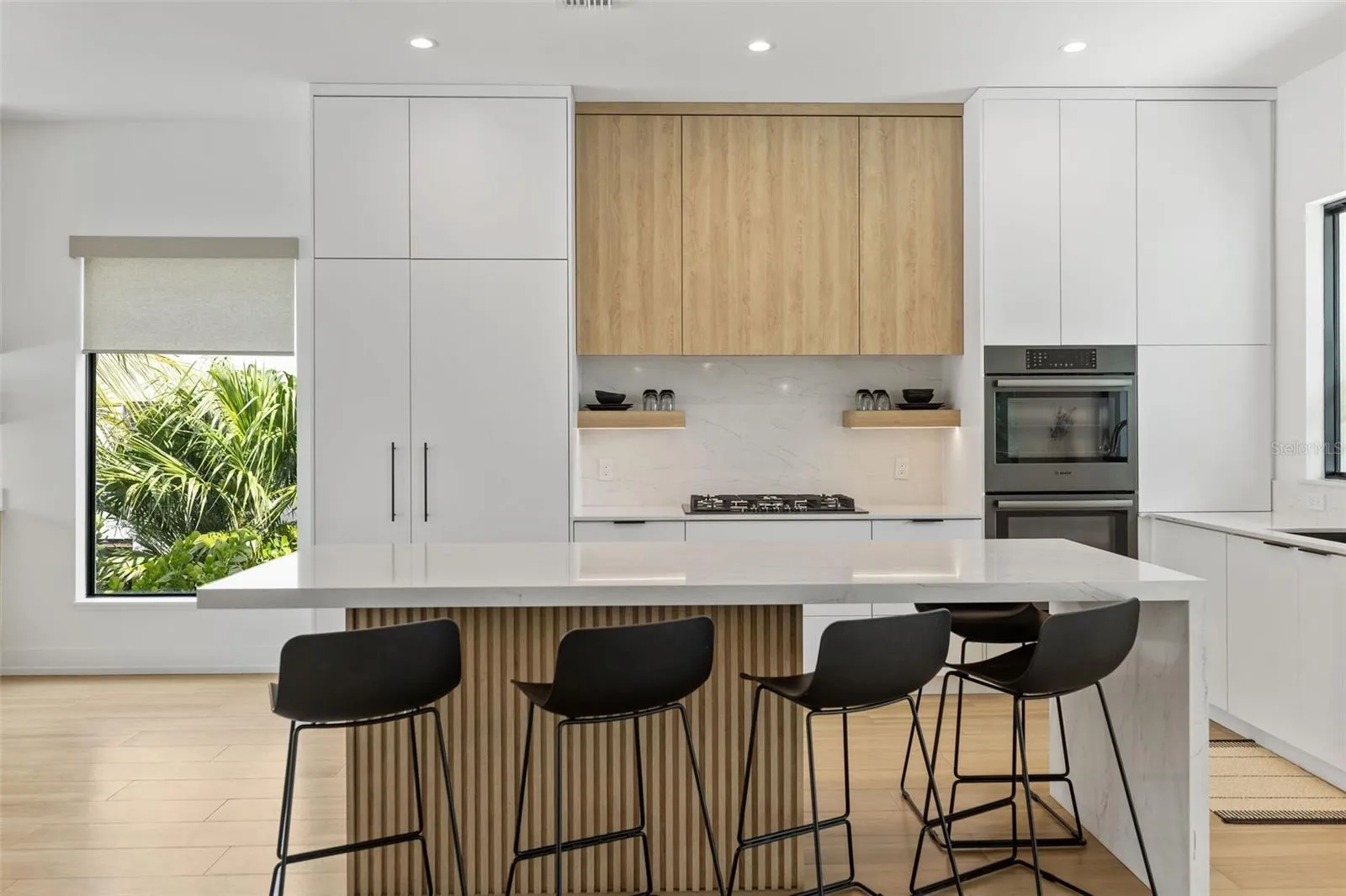 This three-level architecturally poetic home is meticulously crafted and exquisitely finished. Expansive living areas, accessible by staircase or elevator, invite the outdoors in with walls of windows framing the breathtaking views. The gourmet kitchen features top-of-the-line appliances and elegant dining and living rooms, both with spacious seating areas, open to a main-floor balcony where you can savor the island breeze and views of Tampa Bay.