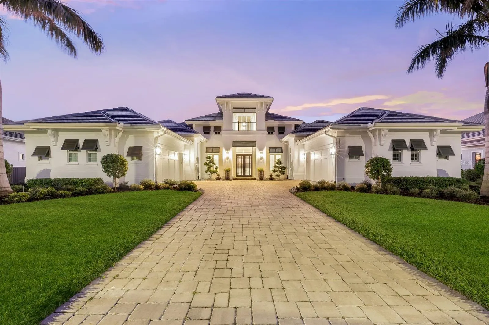 The open-concept design features a chef’s kitchen with quartz 2” countertops, a Wolf gas range, Subzero appliances and extensive custom cabinetry, making it a true culinary haven. The home boasts custom-designed coffered ceilings, invisible surround sound speakers throughout and expansive water views, creating a perfect blend of sophistication and comfort. Each bedroom is a private retreat with its own en-suite bath, ensuring ultimate comfort for family and guests.