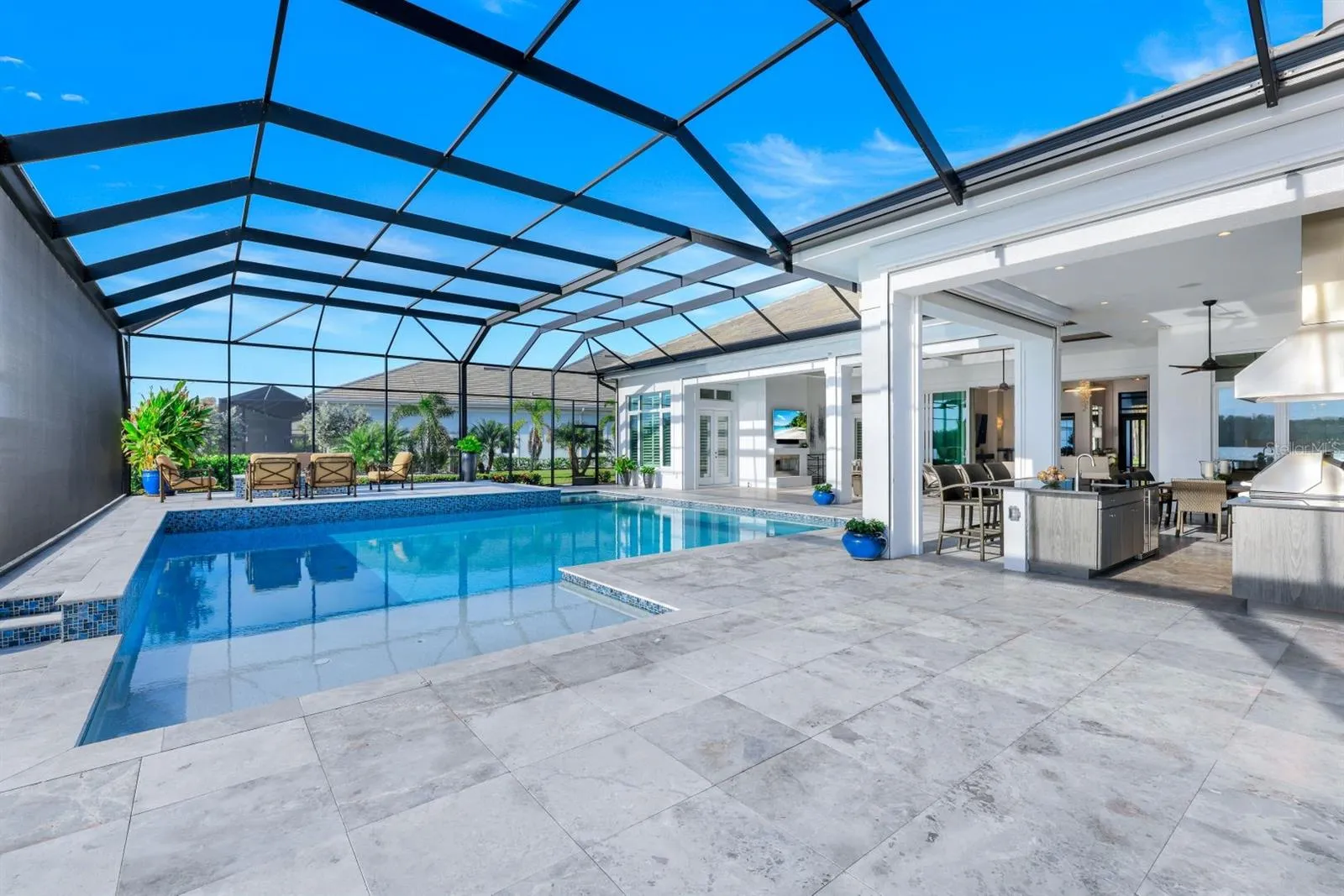 Outdoor living is redefined with marble pavers, a custom pool, a cozy fireplace, a fully equipped outdoor kitchen and a firepit, all designed for enjoying Florida’s outdoor lifestyle. This home is perfectly situated on WildBlue’s beautiful big lake, offering breathtaking views and an unmatched waterfront lifestyle. Right in your own backyard, you can have a private dock for your boat, jet skis, or kayak, allowing you to fully enjoy the lake’s endless recreational opportunities.