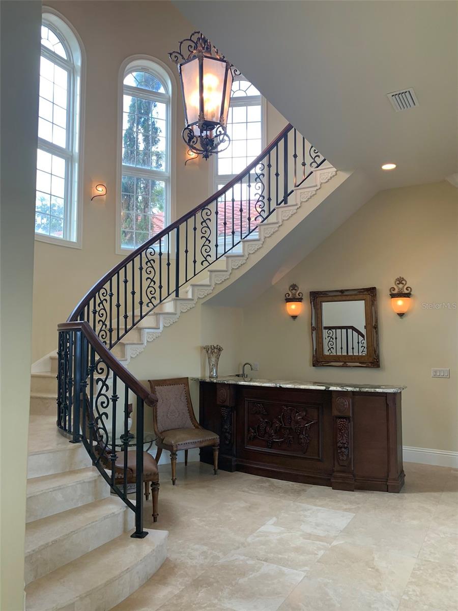 Covers .62 ACRE DIRECT INTRCOSTAL WATERFRONT! This luxurious estate boasts 6,800+ square feet of living, and sits on a Large, oversized lot. No expense was spared in the construction of this 4 bedroom, 4 1.2 bath Tuscany-Italian style, every detail was well-thought-out handpicked and custom designed from the beautiful travertine floor, spiral staircase and Mahogany wood floors. With a custom design and crafted woodwork and cabinetry in the kitchens, bar, Butler’s Pantry, closets, and bathrooms. The moment you walk into the front door of this waterfront beautiful home. You will see the fabulous stone compliment the spacious living room and overlook the breathtaking views of the pool + intracoastal waterway. This house was definitely designed with entertaining in mind, as the 24 x 22 kitchen has soft close commercial grade appliances with a 6-burner gas range, double ovens (one convection), and 1 dishwasher. This Double pane, impact resistant hurricane rated windows throughout; concrete block construction (both floor), with the cells being poured every 2 feet, instead of the standard 4 feet; spray foam insulation; tile roof without any compromise of vent stacks, as the venting was designed just below the soffit to maintain the integrity of below, as the venting was designed just below the soffit to maintain the integrity of the roof. The most impressive part of this house is the view! you can either enjoy the magnificent sunrises from the bed of your master suite or balcony, or from the 150-foot dock with boats house and boat slip.