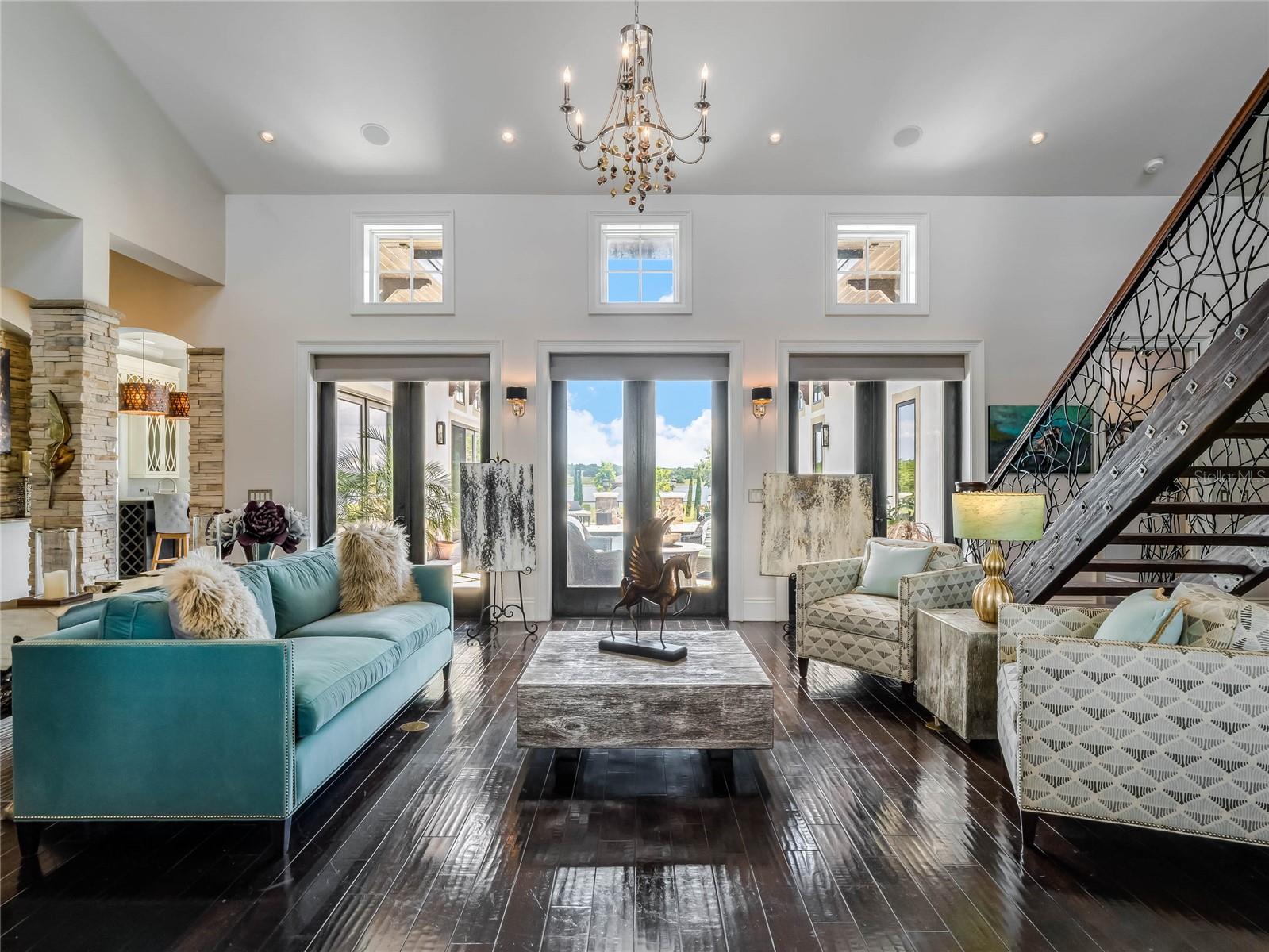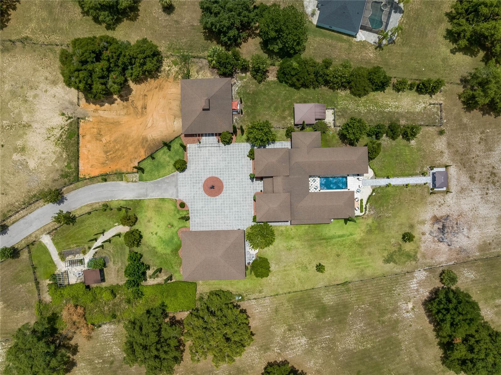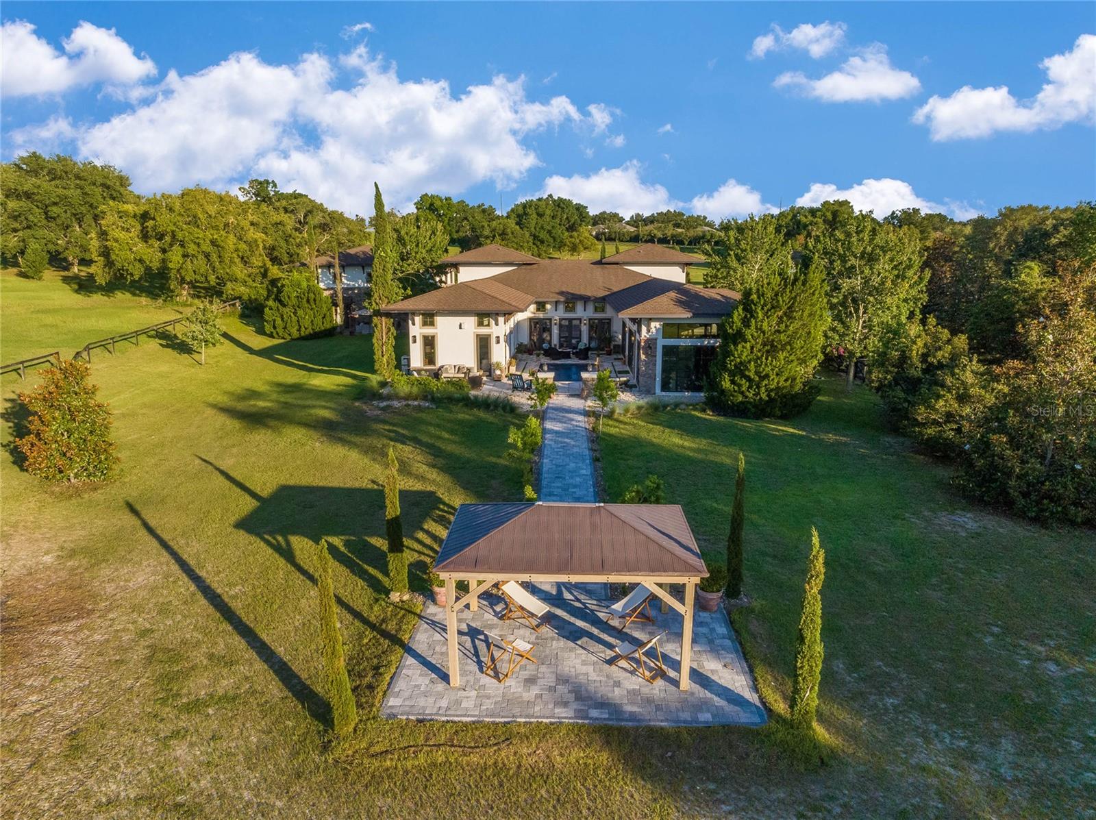 Under contract-accepting backup offers. Welcome to this exquisite estate, where luxurious living and grand-scale entertaining come together in perfect harmony. Inspired by the breathtaking beauty of the Amalfi Coast, this Tuscan-style custom-built equestrian home is a true testament to unparalleled luxury. As you pass through the large iron gates, you’ll be captivated by the sheer elegance and sophistication that awaits. Nestled on over 7 acres of meticulously manicured grounds, this private gated estate showcases flowing fields and equestrian stables, accompanied by a remarkable 6-vehicle showroom with a guest suite above. The main house spans an impressive 5,000 square feet under air and is gracefully positioned on a pristine lakefront lot, offering captivating views at every turn. Upon entering the double front doors, you’ll be greeted by warm earth-colored stone and cedar soffits, seamlessly blending contemporary elements with old-world charm. The exquisite bird’s nest staircase beckons you to explore the entertainment possibilities found in multiple courtyards throughout the property. The interior boasts Chicago brick accents, custom stone work, and high coffered tray ceilings adorned with tongue and grove inlays. This home effortlessly balances designer elegance with comfortable living spaces, featuring 3 bedrooms, 4 bathrooms, 2 office spaces, a media/theatre room, and multiple living areas that gracefully flow around the courtyard, pool, and entertainment spaces. The gourmet chef’s kitchen is a masterpiece, seamlessly blending charming European influence with modern convenience. A 12-foot Italian marble center island takes center stage, surrounded by custom high-end cabinetry and top-of-the-line Jenn-Air appliances. The ample natural light cascades through floor-to-ceiling windows, emphasizing the indoor/outdoor flow and highlighting the beauty of the home. White custom cabinets and dark wood beam ceilings add depth and character to this culinary haven, while the island seating for 6 invites guests to gather and indulge. Adjacent to the kitchen, a courtyard-style pool awaits, enveloped by vibrant bougainvillea trellises, creating a serene oasis for relaxation and entertainment. The primary retreat offers a private entrance, panoramic views of the lake, pool, and courtyard, and custom Chicago brick accents. Inside, you’ll discover recessed curtains, a fully walk-in closet/bathroom, and custom Italian countertops for the dual vanities. Beyond the main residence, the property offers an array of exceptional features. A fully functioning Airbnb above the garage boasts 4 bedrooms, 2.5 baths, and 1,900 square feet, providing additional space for guests or potential income. A beautiful 2-stall barn with a tack room, along with the option for 2 additional stalls, perfectly complements the design elements of the home. Discover a private courtyard here, where you can unwind and immerse yourself in the serene beauty of nature. The garage is a car enthusiast’s dream, featuring 4 spaces with a 4-post lift , a third office space, and a dedicated gym room, all comfortably climate-controlled. This extraordinary property offers the rare combination of land, lakefront access, and unparalleled luxury in the rolling hills of Clermont, Florida. It effortlessly recreates the ambiance of a family member’s olive farm off the Amalfi Coast, bringing the essence of European splendor to the Sunshine State.
