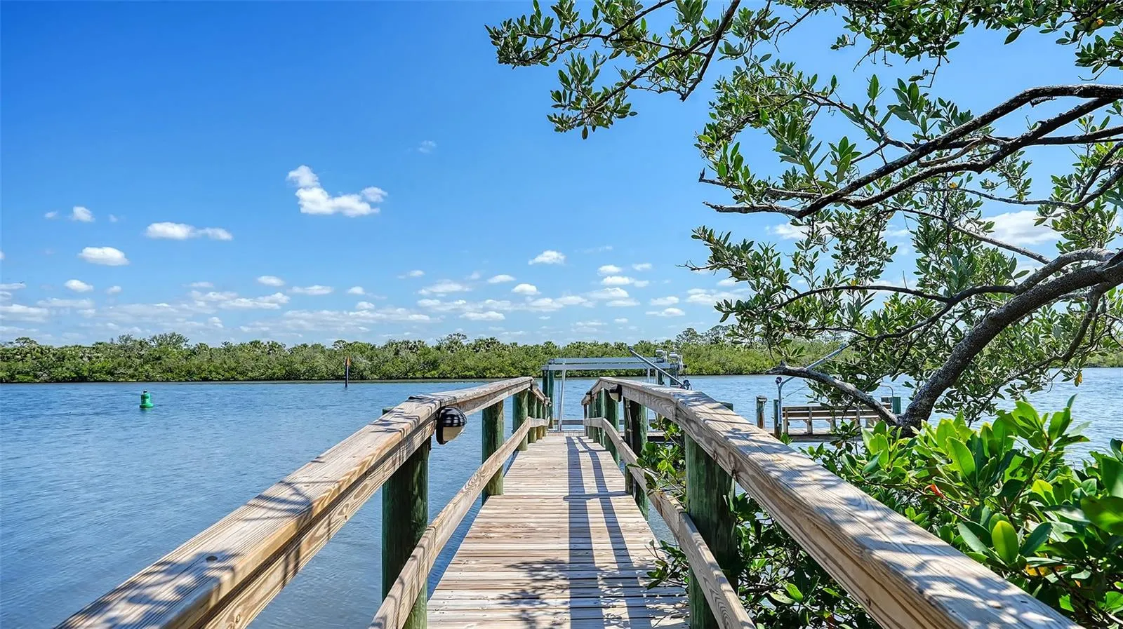 Meandering stone paths wind through lush, newly landscaped grounds adorned with vibrant orchids and native palms, guiding you to a brand new beach walk-out and your own secluded stretch of sand. A thoughtfully engineered sand berm provides vital protection against beach erosion, offering peace of mind and preserving your pristine shoreline for years to come. Along the way, discover multiple shaded and open-air sitting areas—perfect for morning coffee, sunset views, or simply soaking in the serenity of this coastal haven. Here, you can stroll the shoreline in search of seashells and shark’s teeth, watch dolphins play at sunset, or simply unwind with your toes in the sand. On the bay side, your recently resurfaced private dock (2024) and upgraded 10,000 lb boat lift (2023) offer endless opportunities for boating, fishing, or paddleboarding.