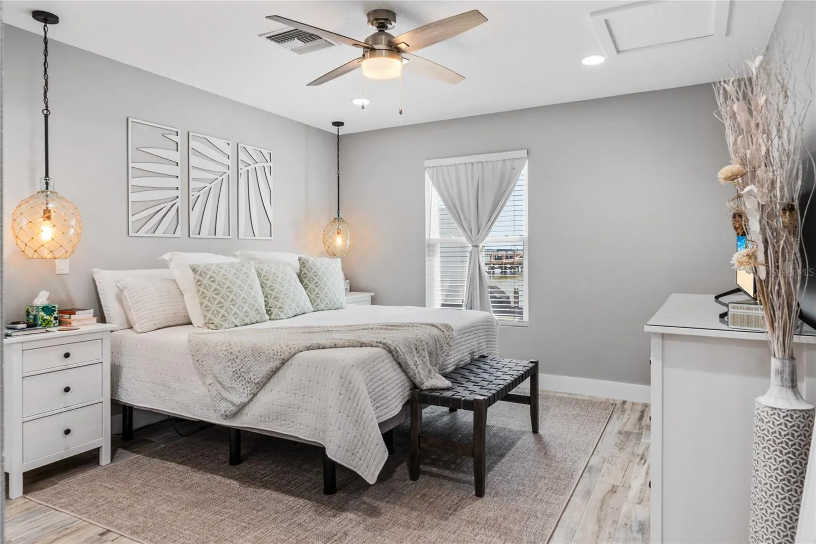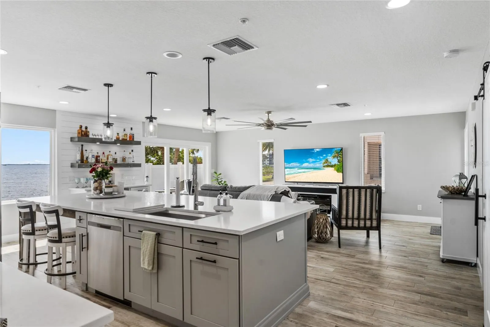 The main apartment (1,427 sq ft) is modern and fully renovated (2020) with two bedrooms and two bathrooms. Impact windows and sliding glass doors frame direct water views, and a spacious waterfront patio offers the perfect setting for enjoying sunrises and rocket launches. A 700 sq ft interior studio suite includes a full bathroom, kitchenette, laundry, and its own private entrance—ideal for extended family, overnight guests, or income-generating potential. The 1,327 sq ft commercial unit faces US-1 and is currently leased through January 2027. Use it as passive income or vacate (with notice) the space for your own business needs.