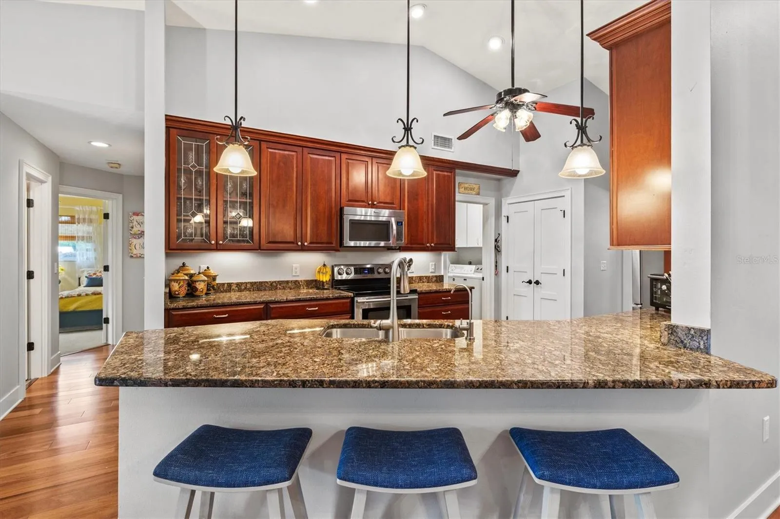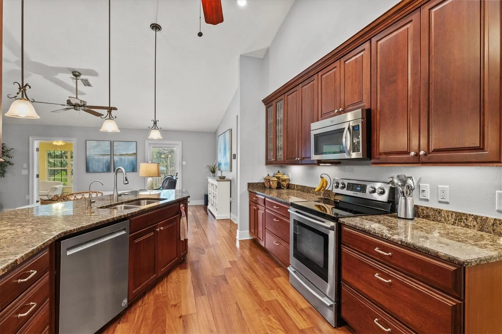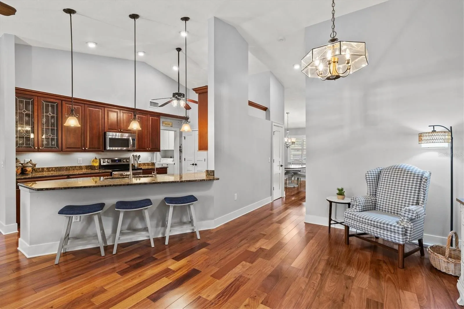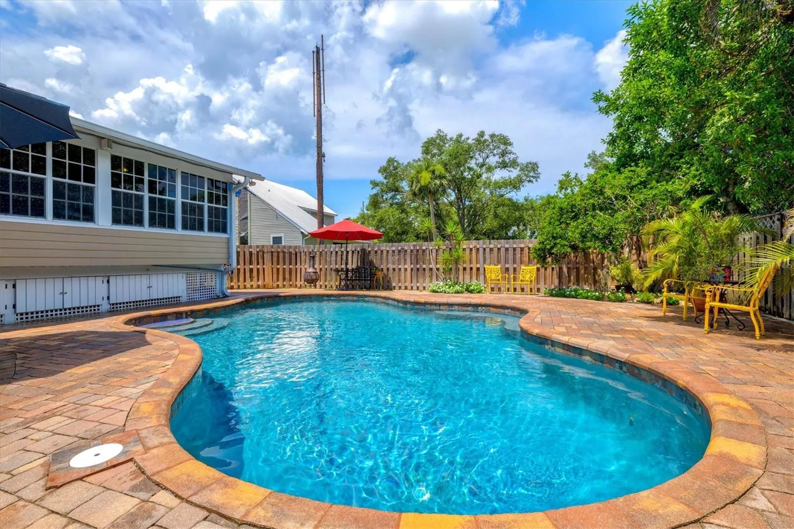 WELCOME HOME to unmatched southern charm in this custom-built home on a dead-end, cul-de-sac street. This ONE-OWNER dream property has been meticulously maintained both inside and out by the original owners. When you step onto the inviting front porch, you’ll notice the pristine landscaping and flowerbeds lining your path. Your hurricane-rated impact front door provides additional safety features with a built-in triple lock system. Once inside, you are greeted by formal living and dining rooms that feature gleaming hardwood floors, 6″ custom baseboards, and fresh, neutral paint. Plantation shutters on the IMPACT windows add the perfect finishing touch combined with peace of mind. The kitchen is adorned with custom 42″ cabinets and granite countertops, which provide a timeless style and offer storage galore, a water filtration system under the sink, and a pantry with custom built-in shelving. Next to the family room and breakfast nook with vaulted ceilings, you will find your owner’s suite with custom-built dual vanities in your en-suite bathroom, a walk-in closet with more custom built-ins and a BONUS room, easily used as a sitting room/office/nursery. Built-in benches, shelving and crown molding complete your owner’s suite. Across the home, you will find a hall with two additional guest bedrooms and a guest bath. These bedrooms boast custom built-in storage systems in the closets. The third bedroom offers a walk-in closet with built-in desk, and shelving/cabinetry with ADDITIONAL desk built into the bedroom itself. This room is ideal for a student with homework, a craft room, or plenty of storage for when guests come. At the rear of the home, you will find a 23 x 13 BONUS family room that overlooks your backyard oasis. A French door leads outside to the Trex decking (installed 2022) on your multi-tiered custom deck. You may either descend the deck stairs to the right to your fully fenced lush backyard, (with a newly rebuilt storage shed in 2025), OR continue down two more deck layers to take a dip in your 35,000 gallon swimming pool with a depth of over 8 feet. With plenty of room for entertaining, this is the idyllic backyard for BBQs, birthday parties, or family reunions. There are even more outdoor custom cabinets with storage for pool toys and supplies. **All backyard furniture & umbrellas CONVEY with home.** More notable features include: a GENERATOR that powers entire home, TWO A/C units (main unit replaced in 2020), NEW water heater in 2023, SOLID WOOD custom doors on all closets and bedrooms, outdoor shower with HOT & COLD water, irrigation well with outdoor spigots for watering, and an Electrolux central vac system that works like a dream. Looking for top-rated schools? **This home will remain zoned for Venice High School in ALL scenarios.** The end of the cul-de-sac also has access to a private, paved bike path that goes straight to Laurel Nokomis School. It’s truly the ideal Nokomis location – just a 10 MINUTE drive to EITHER Venice Beach or Nokomis Beach. With way too many features to list, you HAVE to come see this one for yourself! Schedule your showing TODAY!