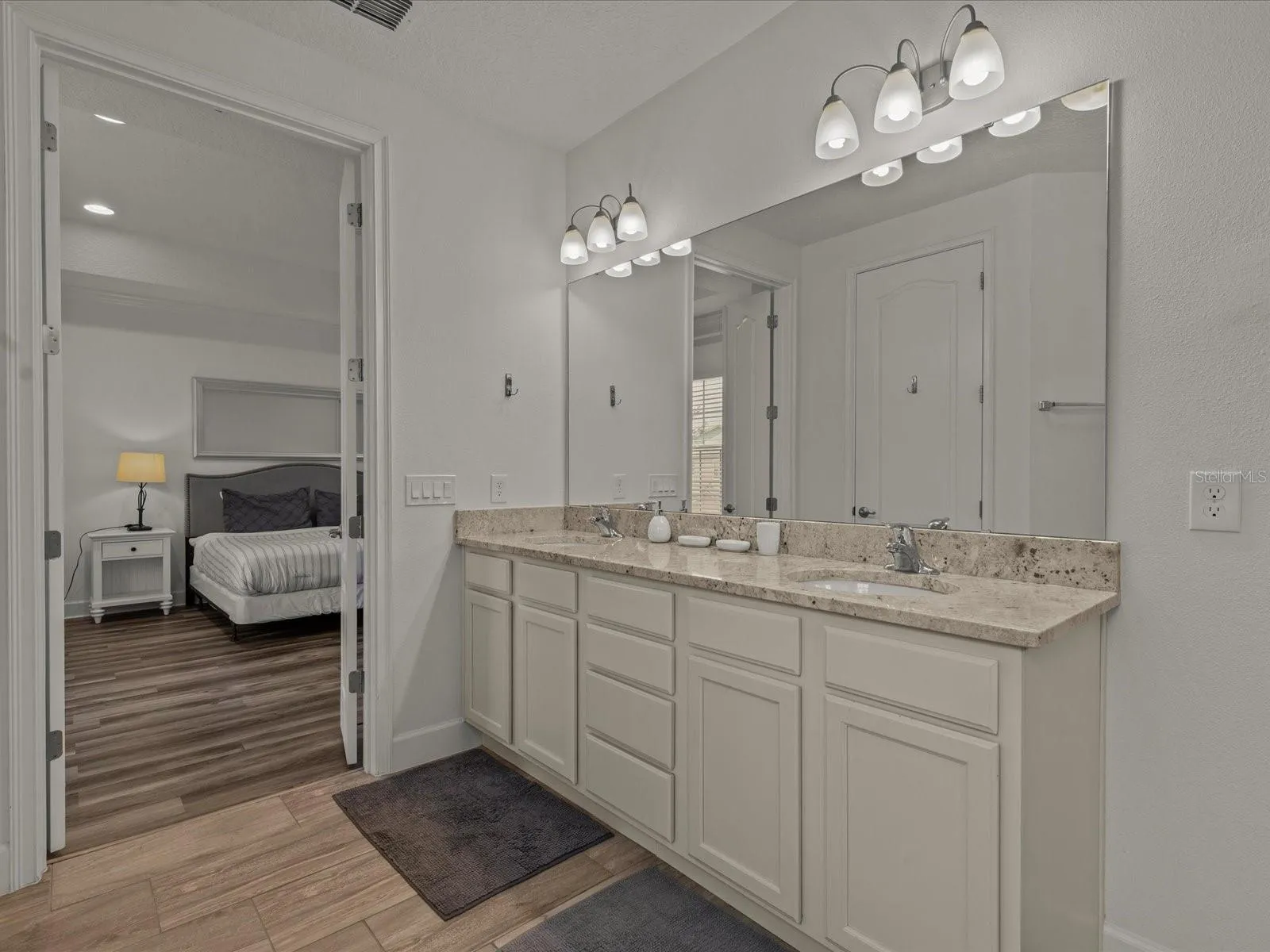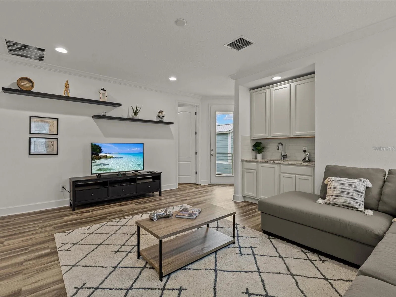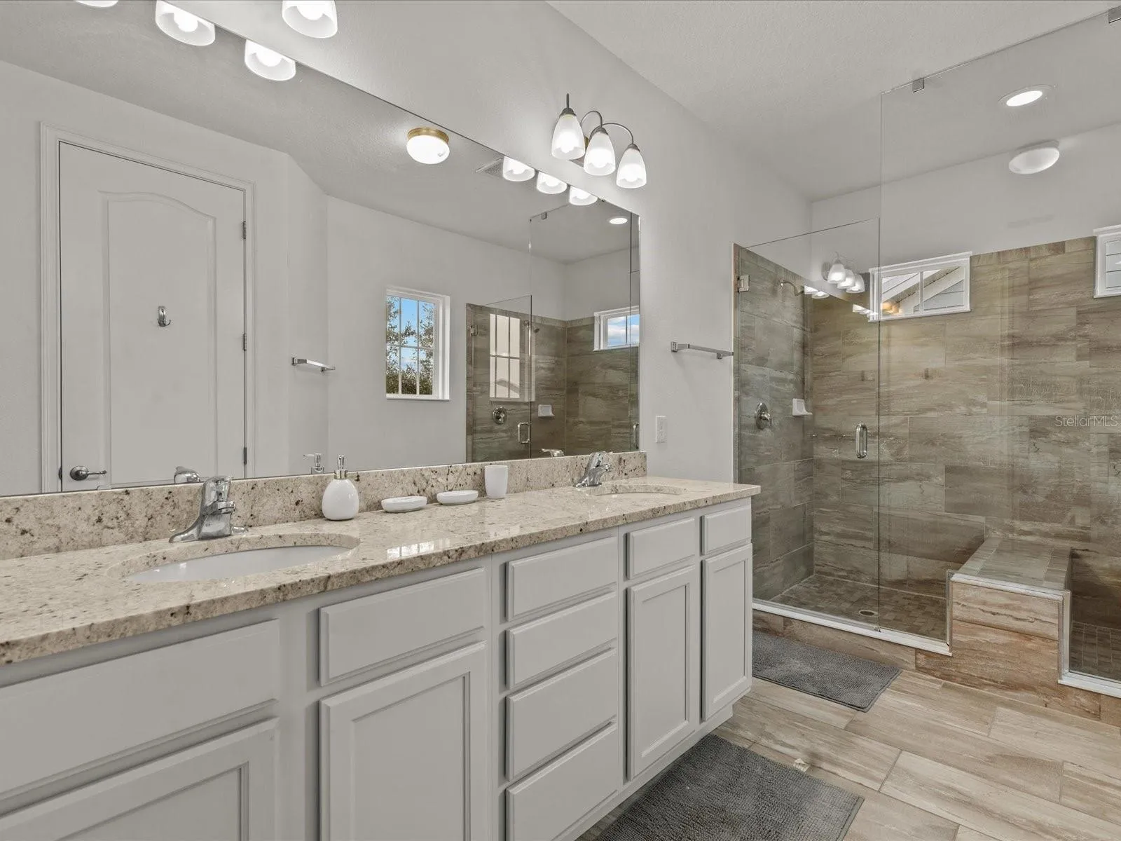 Upstairs, the **primary suite** offers a serene retreat with an oversized **spa-style en-suite bathroom**, dual vanities, and a dual-head walk-in shower. A versatile **loft space** with built-in counter and wet bar provides the ideal setup for a game room, movie night, or second living area.
